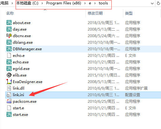 4、进入易语言安装目录下的“tools”目录,找到“link.ini”文件