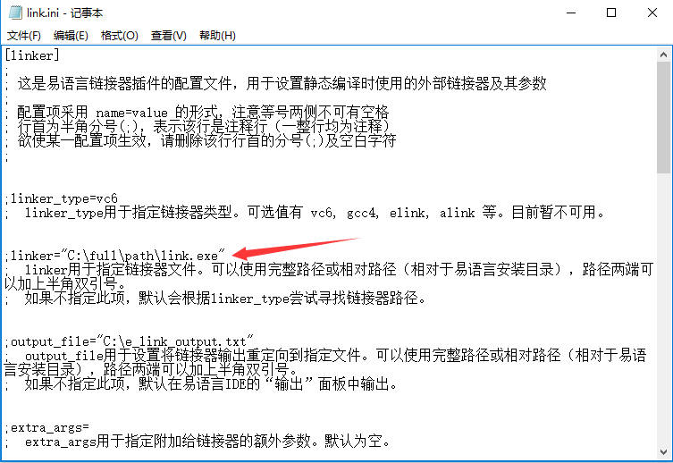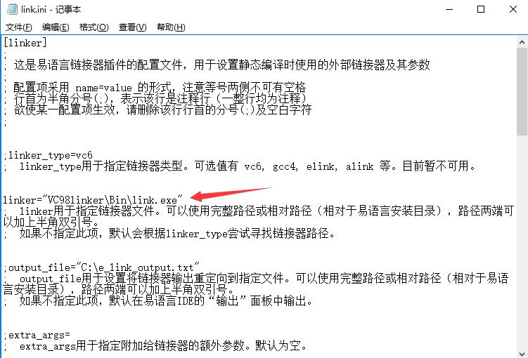 5、打开文件“link.ini”,找到如下图中箭头所指行