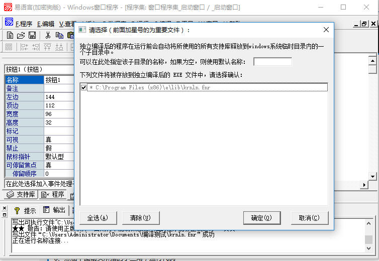 普通编译:发布时必须带上支持库(fne、fnr)才能运行