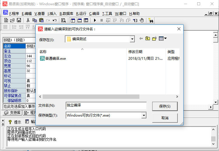 易语言代码编译到EXE文件有下面几种方式: