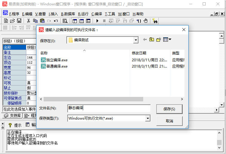 1、点击“编译”菜单下的“静态编译”项,弹出如下界面,输入要生成的文件名,写出EXE文件。